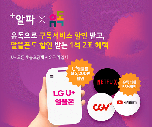 U+ 유독은 넷플릭스, 디즈니+, 티빙, 요기요 등 다양한 구독 상품을 이용할 수 있는 서비스입니다. 유튜브, 넷플릭스 등 다양한 OTT를 이용하고 있으며, 매달 구독 서비스에 지출되는 금액도 부담감으로 느껴집니다. 이야기모바일에서 알뜰폰요금제와 유독을 결합하면 다양한 가입 서비스를 더욱 저렴하게 이용할 수 있고 통신비도 아낄 수 있어 여러모로 이득이 됩니다.